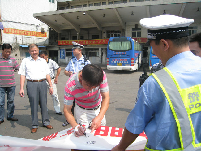 9月4日,市客運分公司與交警支隊二大隊在安慶汽車站停車場內開展“文明交通我承諾,文明交通我參與”駕駛員簽名活動;顒邮紫扔山痪ш牰箨牰嘘牀钪笇T宣傳5種易發(fā)生道路交通事故的不良及違法駕駛行為,楊指要求駕駛員駕駛車輛做到:不超員、不超速、不疲勞駕駛、不酒后駕駛、不無證駕駛,做文明禮讓安全行車的文明駕駛員;隨后進行了駕駛員簽名,市客運分公司110名未當班的駕駛員參加了本次簽名活動。