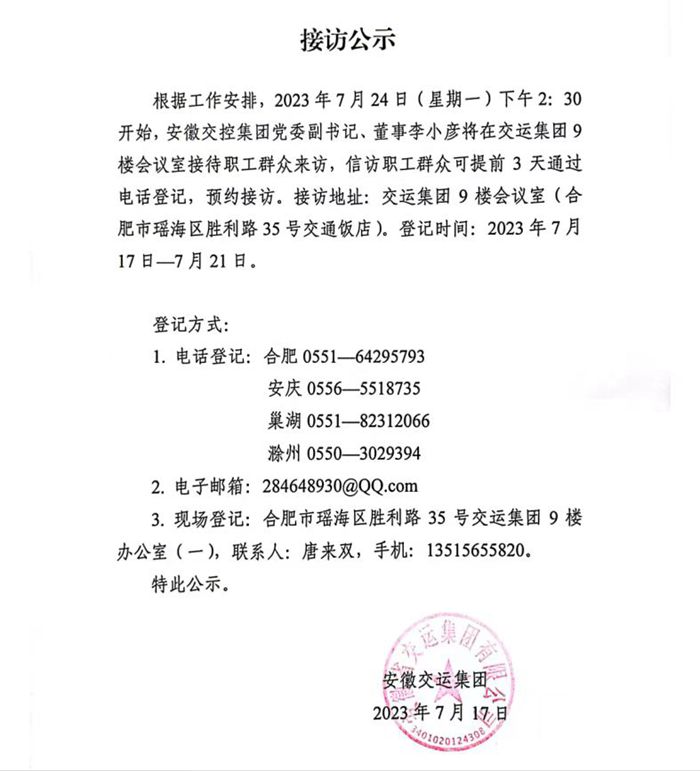 交控領(lǐng)導(dǎo)接訪公告