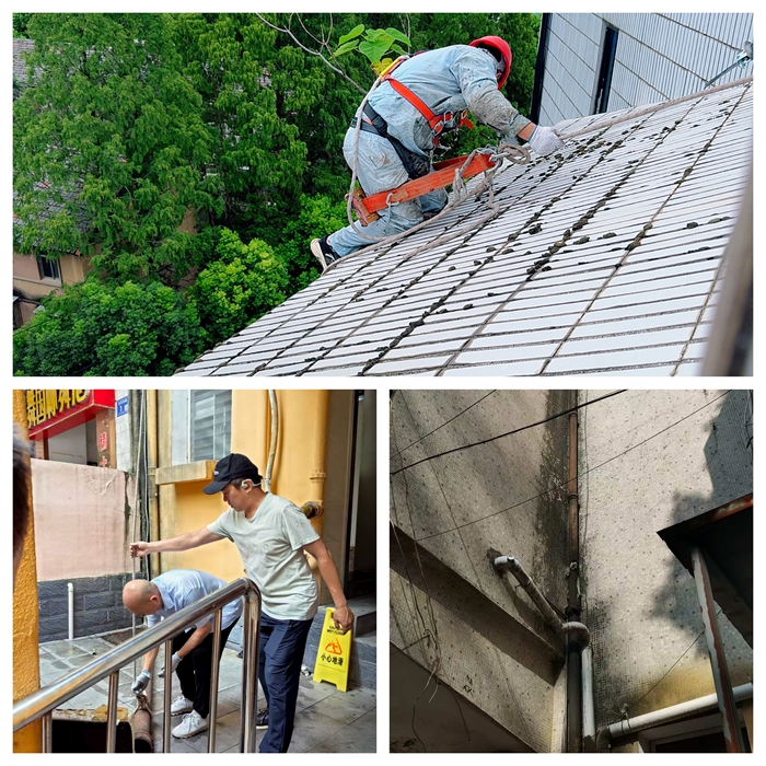 8月安全巡查期間,綜合服務(wù)中心安全科針對(duì)紡織南路7號(hào)樓及周邊區(qū)域開(kāi)展專(zhuān)項(xiàng)隱患排查,發(fā)現(xiàn)兩處亟待處理的安全問(wèn)題:一是7號(hào)樓公廁外側(cè)落水管多處破裂,導(dǎo)致雨水滲漏至路面并形成大面積積水,不僅影響市容環(huán)境,更對(duì)過(guò)往車(chē)輛及行人構(gòu)成潛在風(fēng)險(xiǎn);二是慶達(dá)綜合樓頂層臨街面瓷磚多處開(kāi)裂,縫隙中滋生的灌木根系已侵入建筑結(jié)構(gòu),存在高空墜物隱患,嚴(yán)重威脅公共安全。